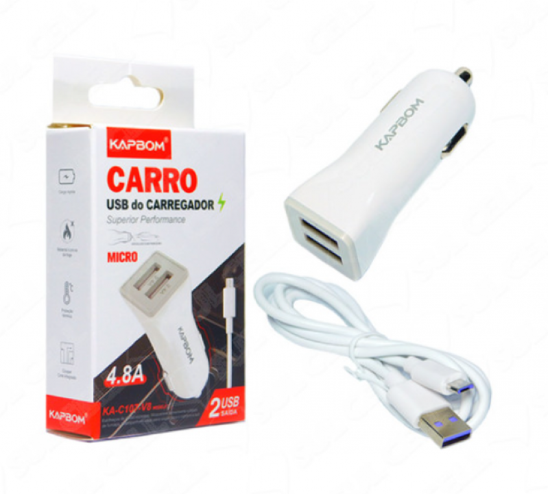 Carregador Fonte Veicular Rapido 5v 4.8 Usb Duplo Cabo Removivel v8 (KA-C107-V8)